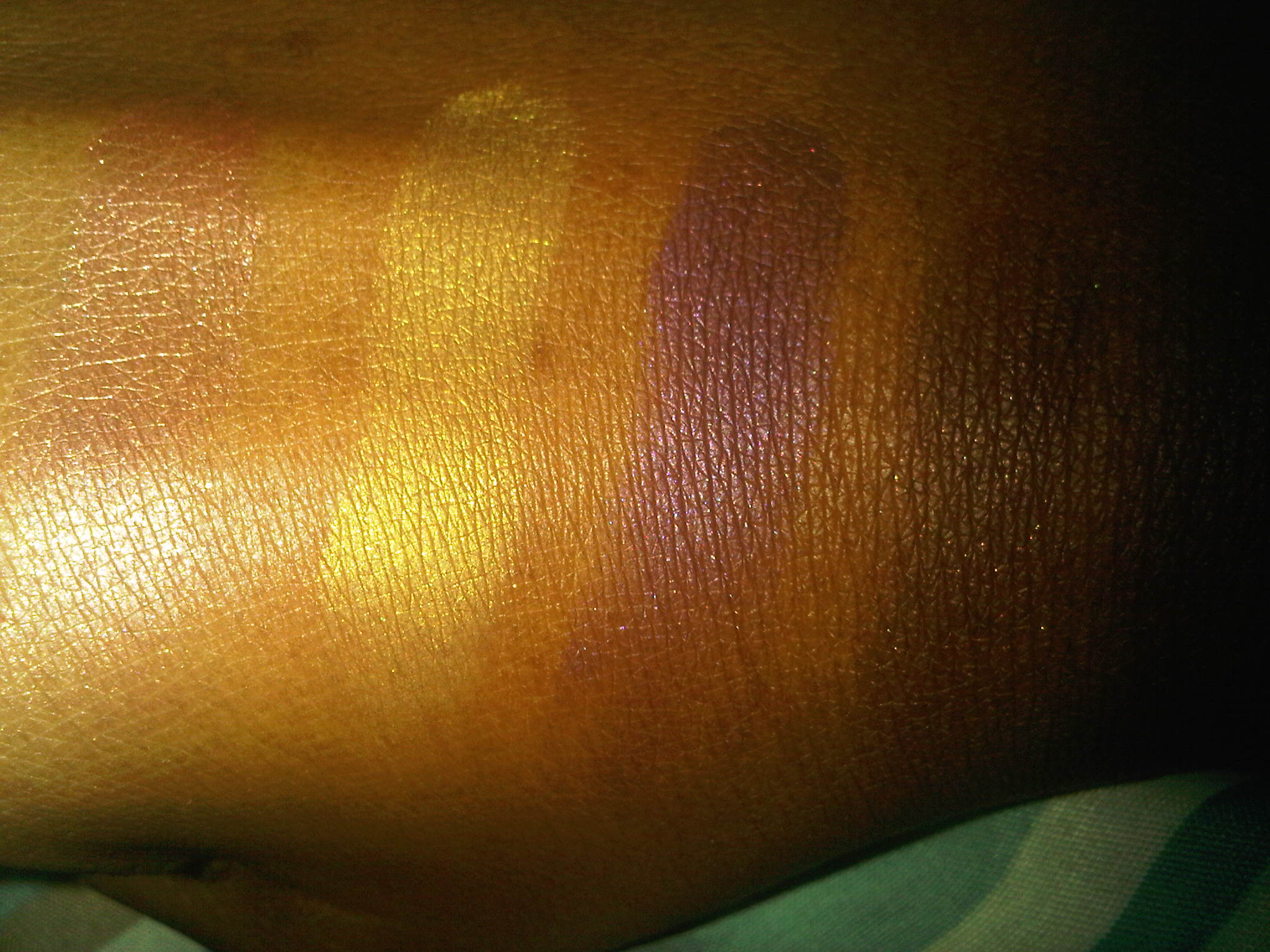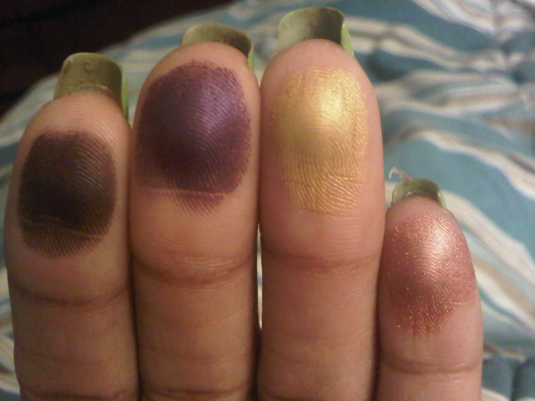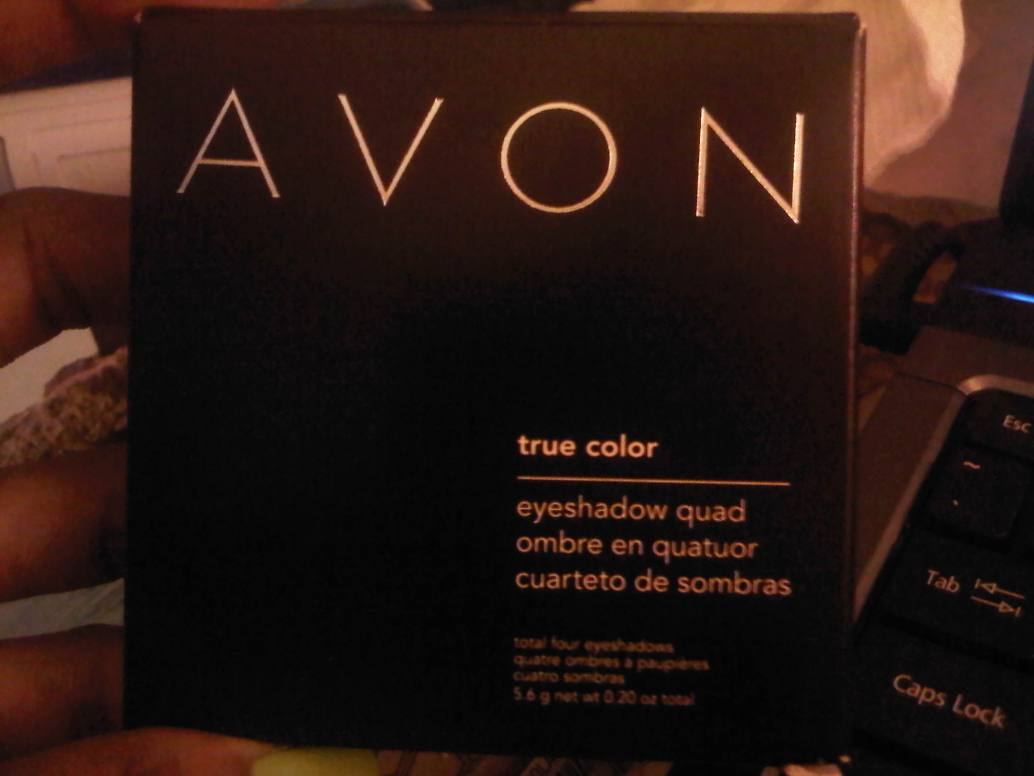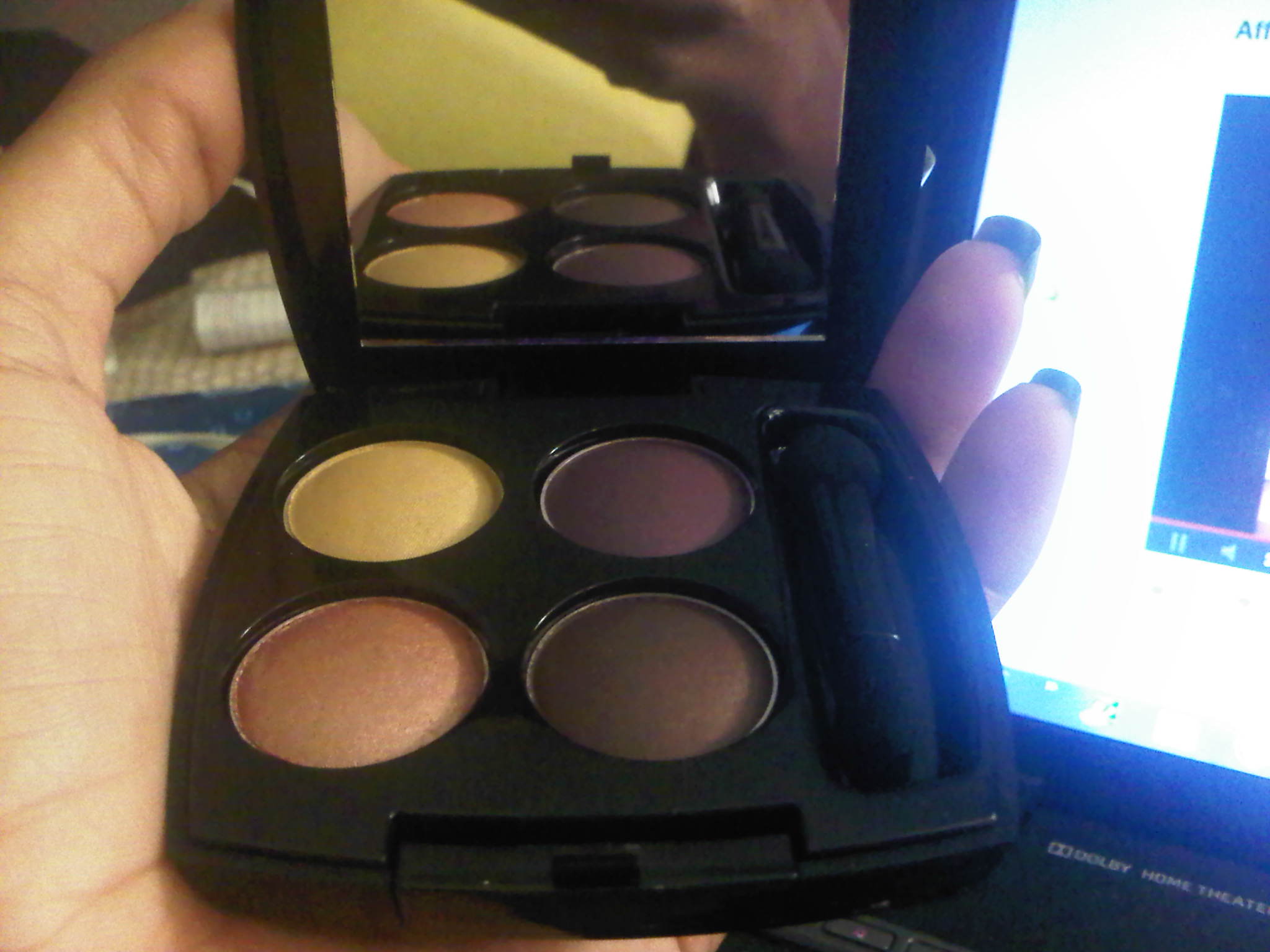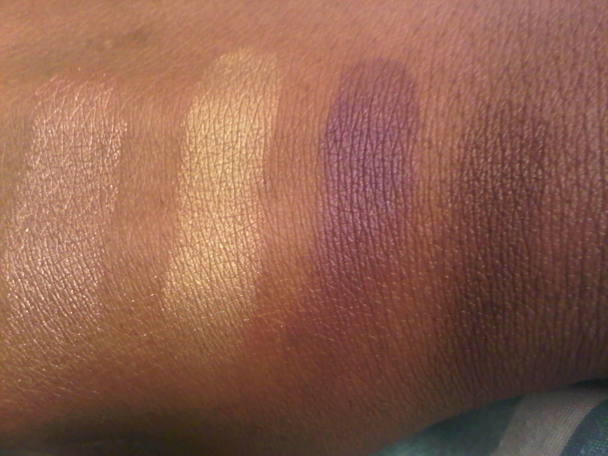 I have to be completely honest with you guys, I am not overly swayed by Avon products like many people are. I know they were wonders for many people, and that is great. But for me, they have been at best ok. But I have a client that sells them, so I figured it wouldn’t kill me to at least see what she/they were offering. I scrolled through the pages, not particularly impressed with anything enough to consider buying them. They were all either something I had already with another company, too expensive, not for my skin tone, and the list goes on. Then I saw this eye shadow quad. It was a cute compact size, which would be really convenient for travel instead of my extensive collection in much larger palettes. The colors also appeared to be vibrant and pigmented, which is requirement of mine for my eye shadows. It was reasonably priced enough for me to try it out. If i liked it, then great, and if not, it wasn’t too big of an investment for it to upset me or break the bank. I placed my order, and now that I’ve swatched them, I am glad I did :). They are indeed very pigmented, and true to color from the picture in the catalog. The packaging is quite nice, very sleek looking. It also comes with a very nicely sized mirror, perfect for doing your makeup or touching up on the go. It also comes with a double ended sponge tip applicator, for those who use them. The quad is in ‘Vibrant Spice’ and it was about $ 5.99.