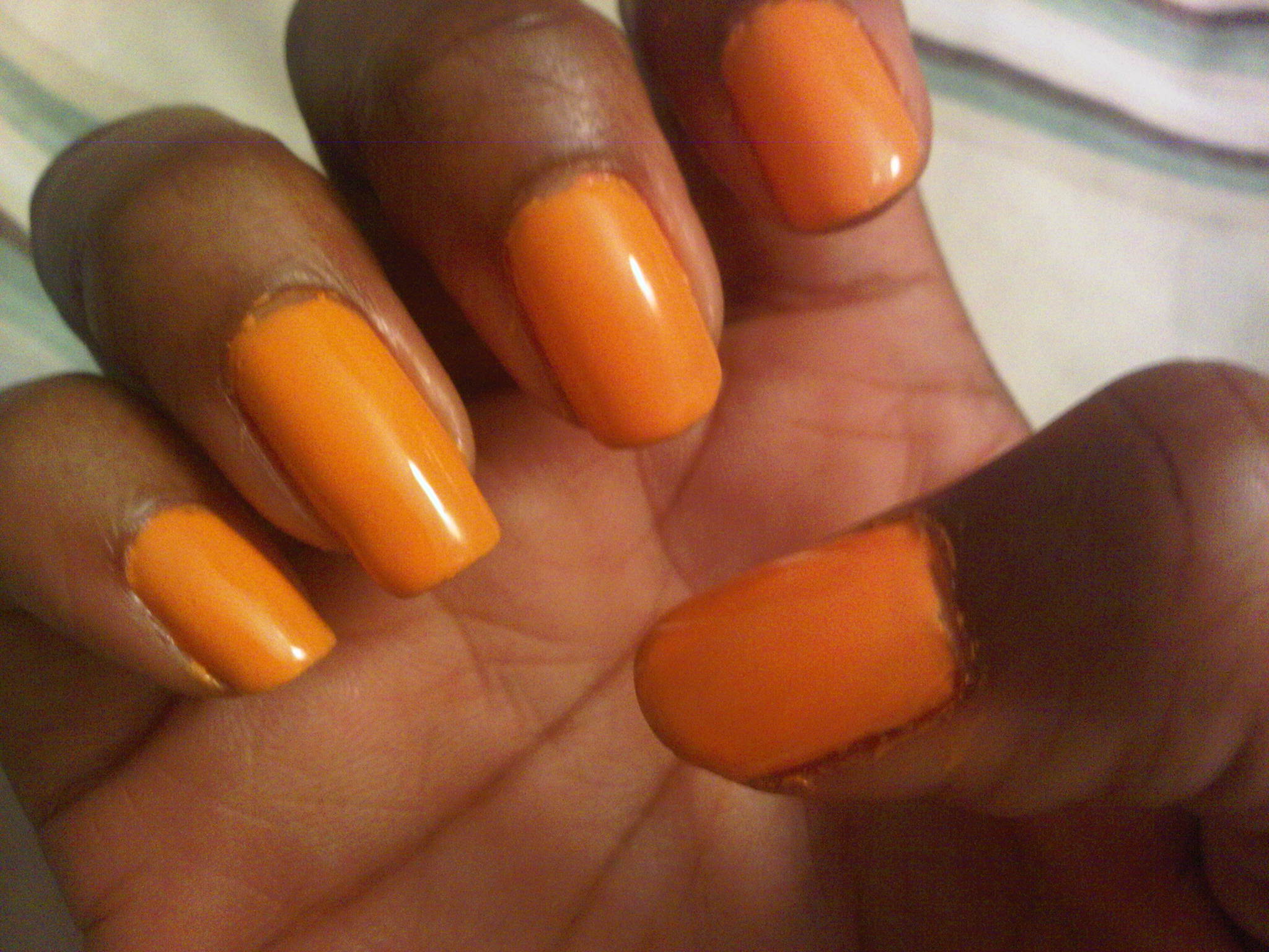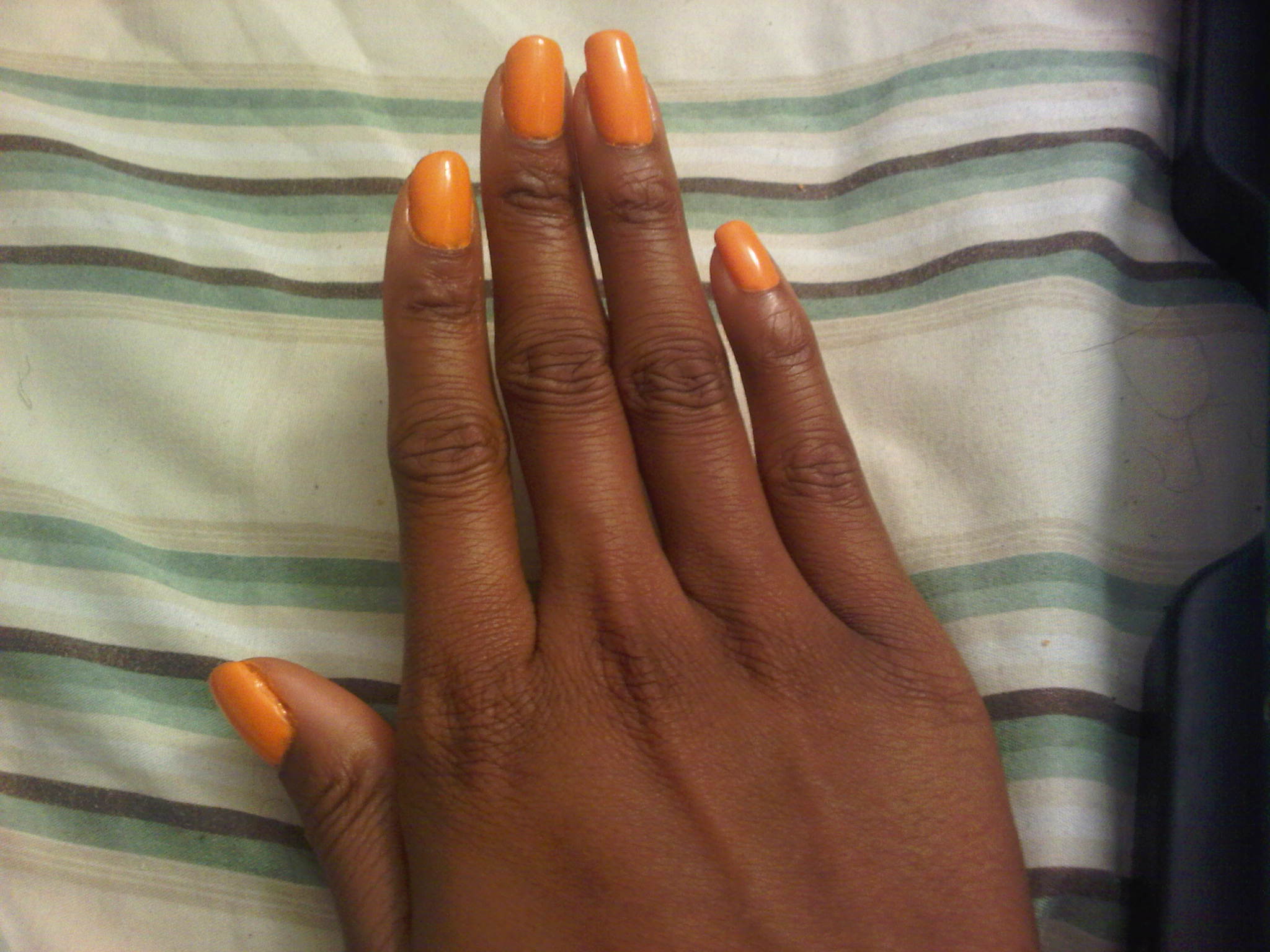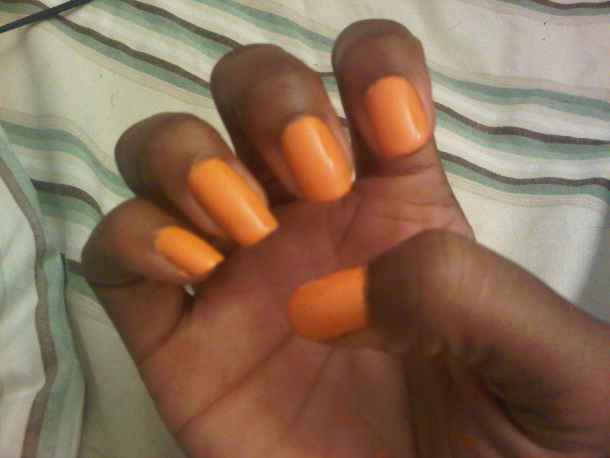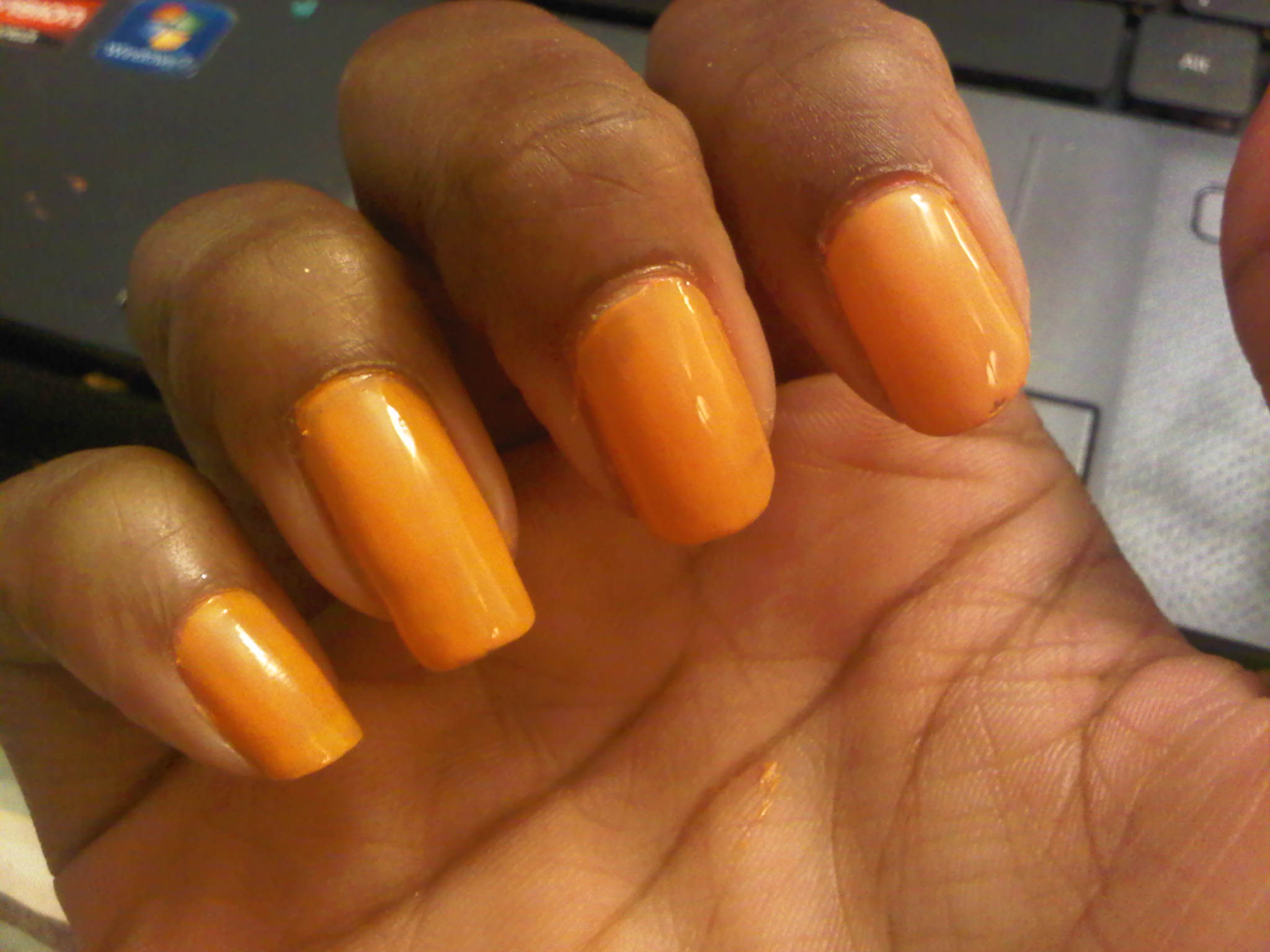 Greetings!! Really quick post tonight guys, because this headache is toooo real but I just had to come on and update you all while I had a few minutes. So, I changed my nail color again. Even though it has been less than a week, and I loved my last colors, I have been itching to see what this color looked like on my nails, so I gave it a go. Its not one of my bright ‘see-it-from-across-the-room’ colors, but I like the change, It was decent coverage, two coats got it just the way I wanted, but even one coat was wearable. It had a nice creamy texture, and did not go on streaky at all, quite a good quality for the price.I must say its not exactly the color I was picturing to go with the name. When I hear the name ‘Sunny Side Up’, I was more picturing something this creamy, but more along the yellowish side rather than an orange sherbert/sorbet kind of color, but still really pretty. Anyway, have a look 🙂 :