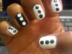 Polishes: White- Spoiled ‘Correction Tape’ ; Black – Sinful Colors ‘Black on Black’