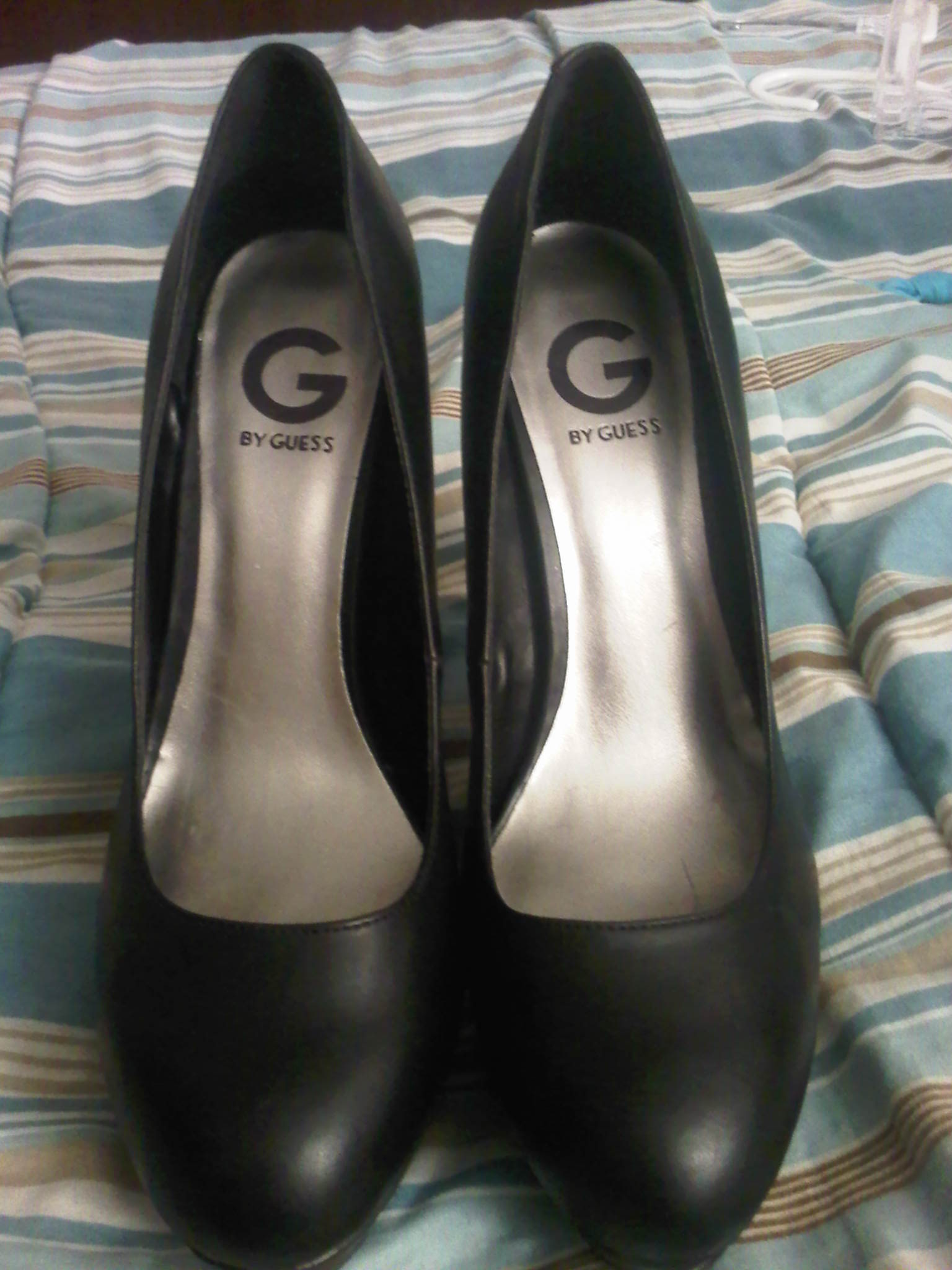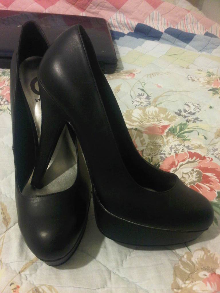 So over the last couple week or so, I acquired a few items that I thought you all might like….not as much as I love them, but I’m sure you will enjoy. While waiting on a movie with my coworker, we did a little window shopping in Marshalls. I walked in there, and headed for my usual targets: shoes :). I admit that I don’ t luck out often in Marshalls when it comes to shoes, but when I do they definitely are worth it. This time was no exception. I took a look through my section and came across many different types, from the too high and dangerous, to the too low and boring [and many in between the two categories]. At the bottom of all the rows, was a pair of pumps. Glorious black pumps. Pumps with a leather look and feel, a round toe and a decent heel height, and to top it all off, the were G by GUESS!!! They also weren’t painful, which is what I expected to be honest.The icing on the cake: they were on clearance!