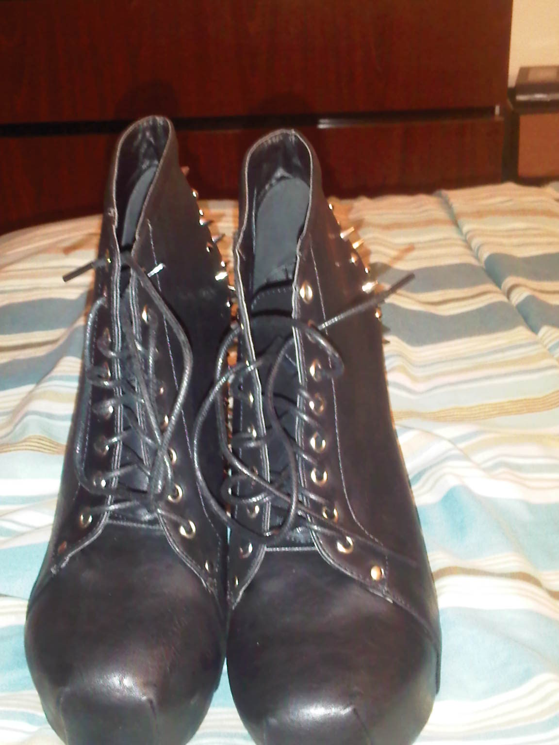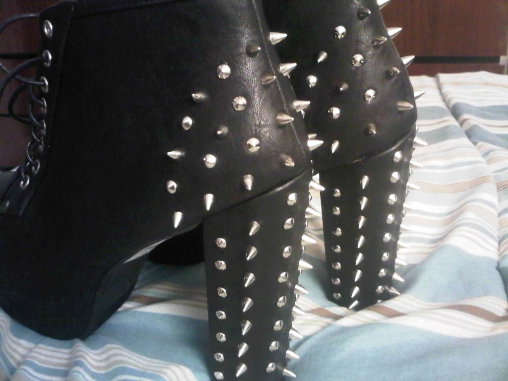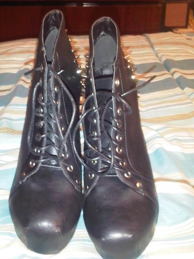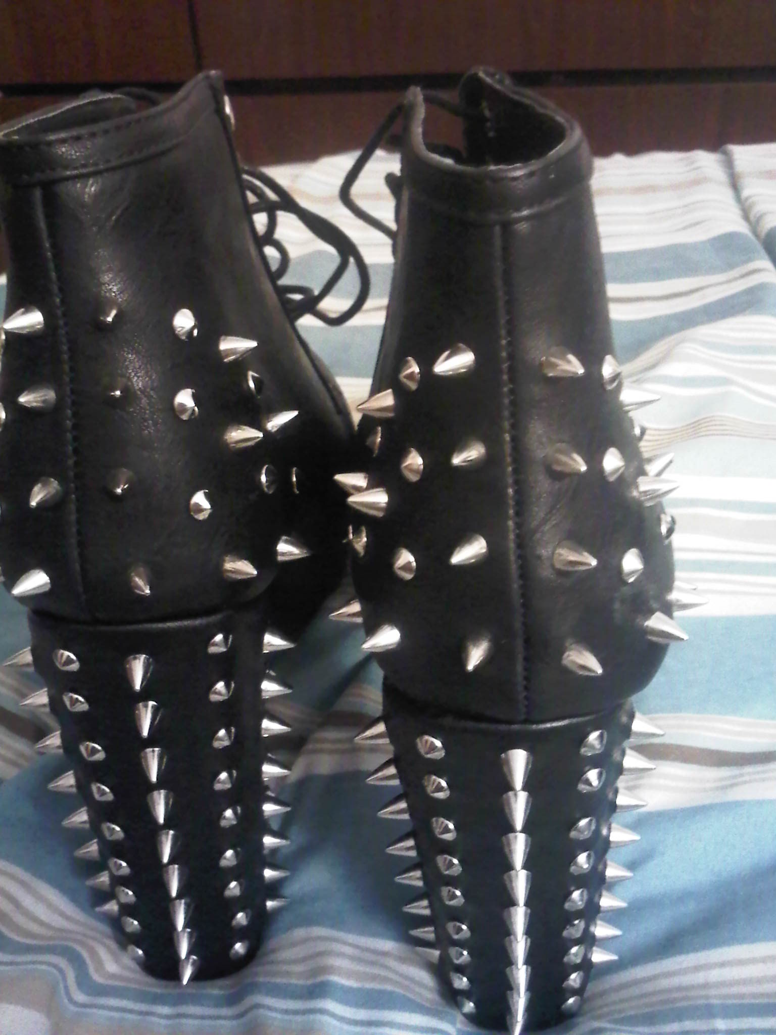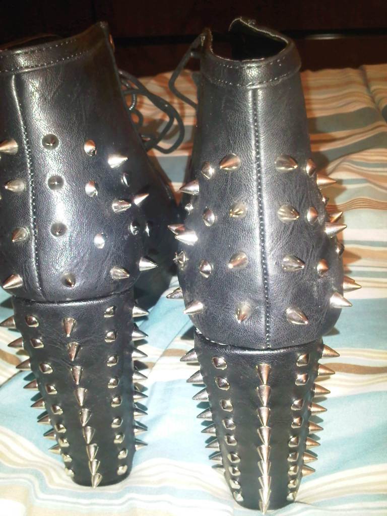 Last up is my favorite purchase. I dance in my brain just thinking about it. For those of you who follow show designers, you must be familiar with Jeffrey Campbell and one of his most famous creations, the Litas. While in Madrag, I saw a pair of lookalikes with spike detail on the back and fell IN LOVE!!! They are so edgy, in that I’m-a-cute-rocker-girl-who-could-kick-your-butt kinda way. These shoes are sharp [literally] and just as fierce. I saw a lone foot on display in the back of the store, and instantly my heart began to sink. I was pretty sure they didn’t carry my size, and whats more, if they did, surely they must be out of it, for it appeared that this was the last pair of that style that I saw on display. I crossed my finger and picked up the shoe and turned it over to look at the size. I am pretty sure I let out a small shriek when I realized it was the last pair in the store…in MY SIZE!! I ran to the clerk to ask her for the other foot so I could try them on. They were lighter and more comfortable than they look, which cemented even more my determination to buy. I am so psyched right now..I’ll stop blabbering and just show them now! 😀