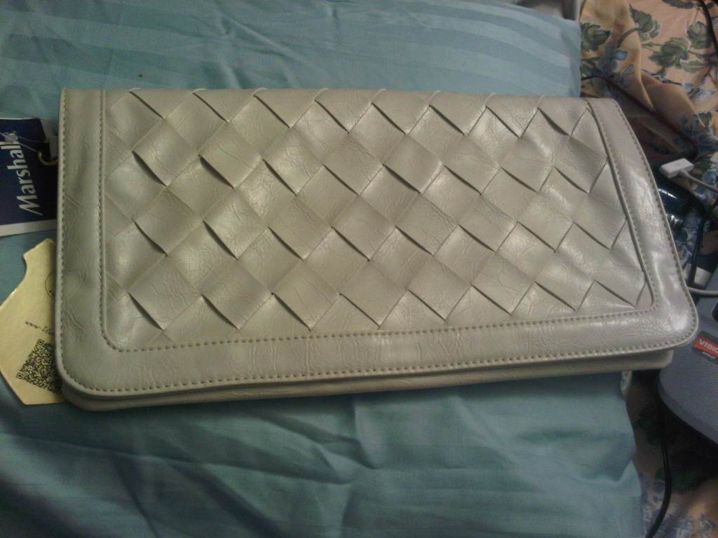 My next item was actually a gift from my daddy [Love you dad!] while he was here visiting. It was from Marshalls, and a very cute, yet practical purchase. It was an over-sized cream-colored clutch, and I love it! It features a weaved pattern, on both front and back, a detail that makes it stand out from other clutches I own. Its very chic, but still big enough for my phone, cards, lip gloss and key makeup products, without being bulky. It has a wrist strap if you prefer to wear it that way [even though I think I will be wearing it under the arm]. It has a magnetized flap [with hidden magnets] and zippered entry for added security, as well as interior pockets [both zippered as well as ones for cellphones and other smaller items].