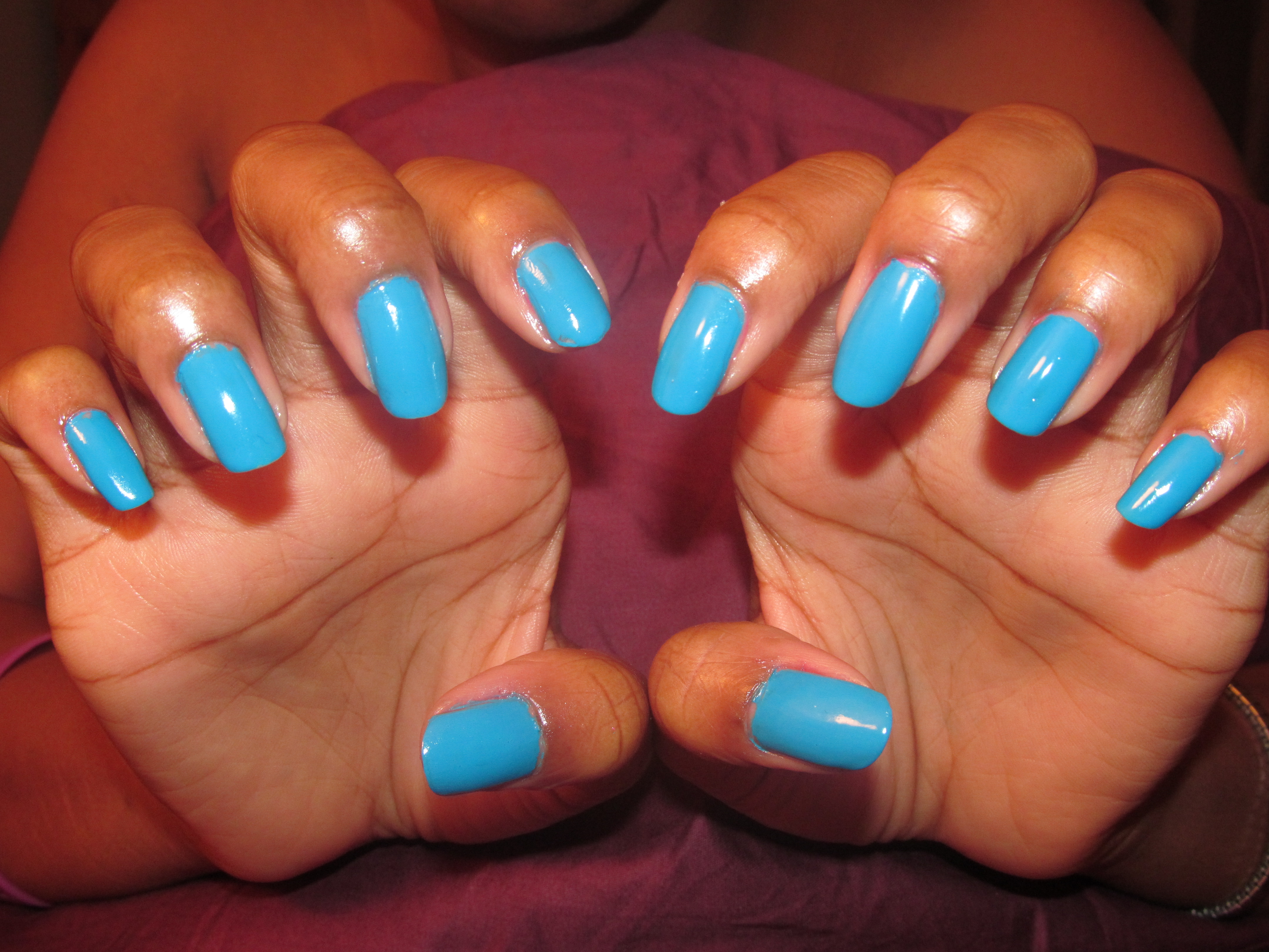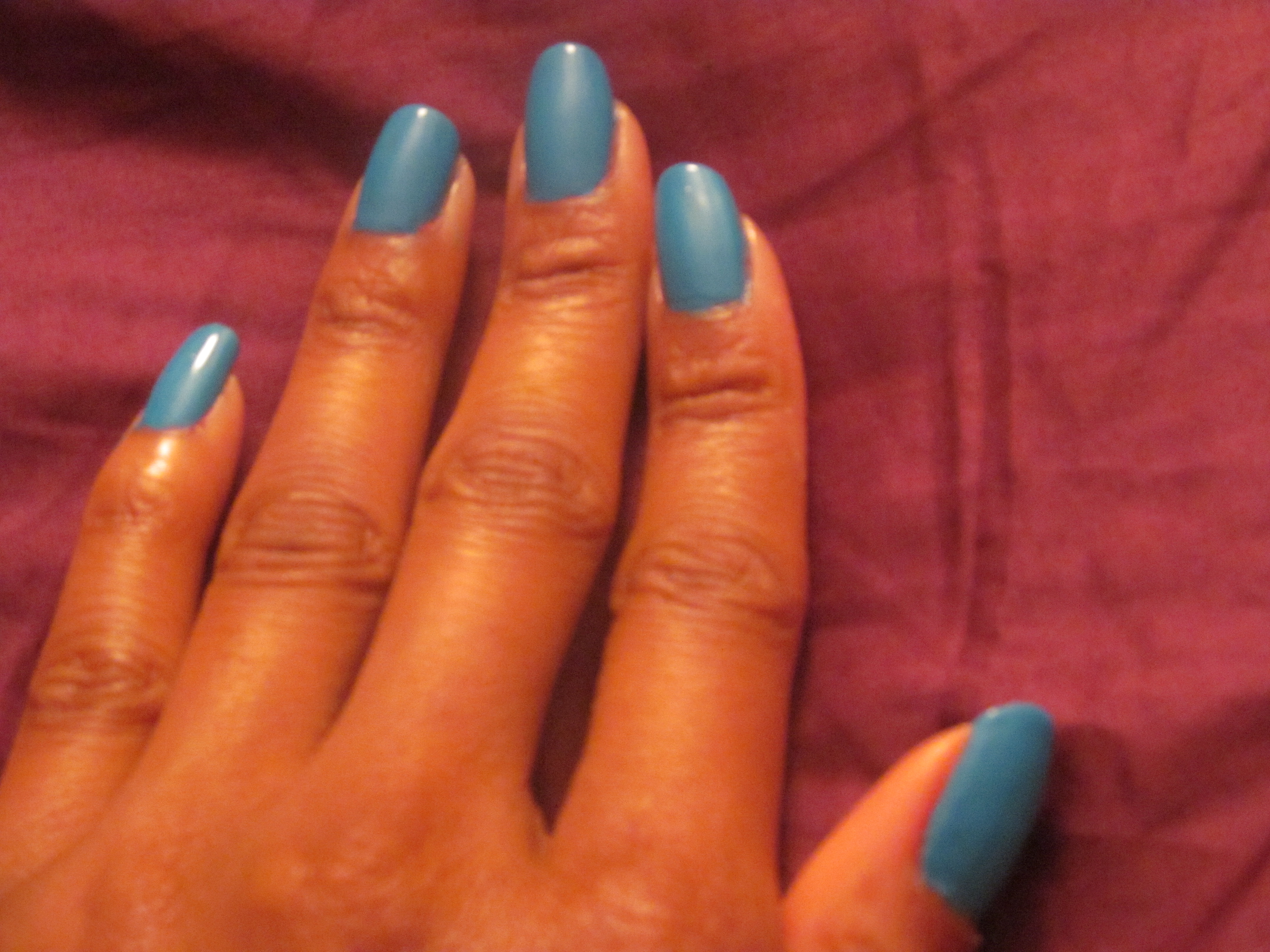This color is ‘Blue Me Away’ [#04] and is a very rich medium blue, perfect for spring. I loved the color so much I decided that I didn’t want to distract from it with any nail designs [at least not this time around. Who knows? Boredom may take me over and I might remix it a bit!]
