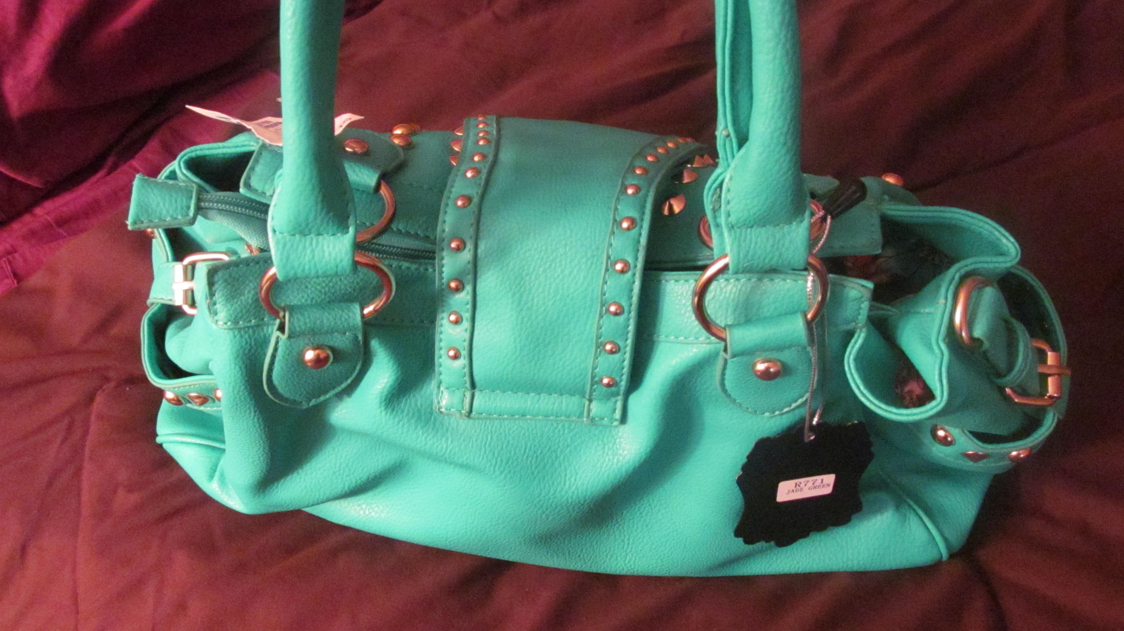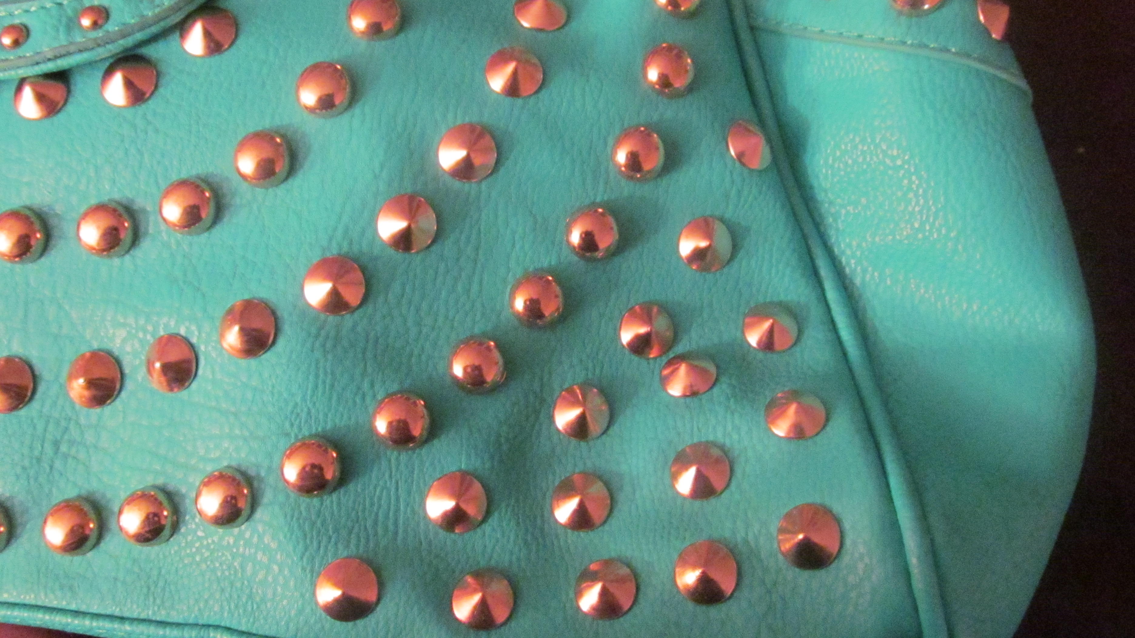 Today’s feature is a pretty large and stylish tote. The design is not for the faint of heart and if you are scared of color, I suggest you back away slowly. I searched the internet high and low to try to find the proper shade of green to describe this beauty. The closest thing I could find was a medium spring green [if any of you know the exact name of this green, please lend a helping hand]. Its bright and very spring/summery, [not that the fact that we are pretty much out of both of those seasons would deter me at all from wearing it right now] and simply beautiful.