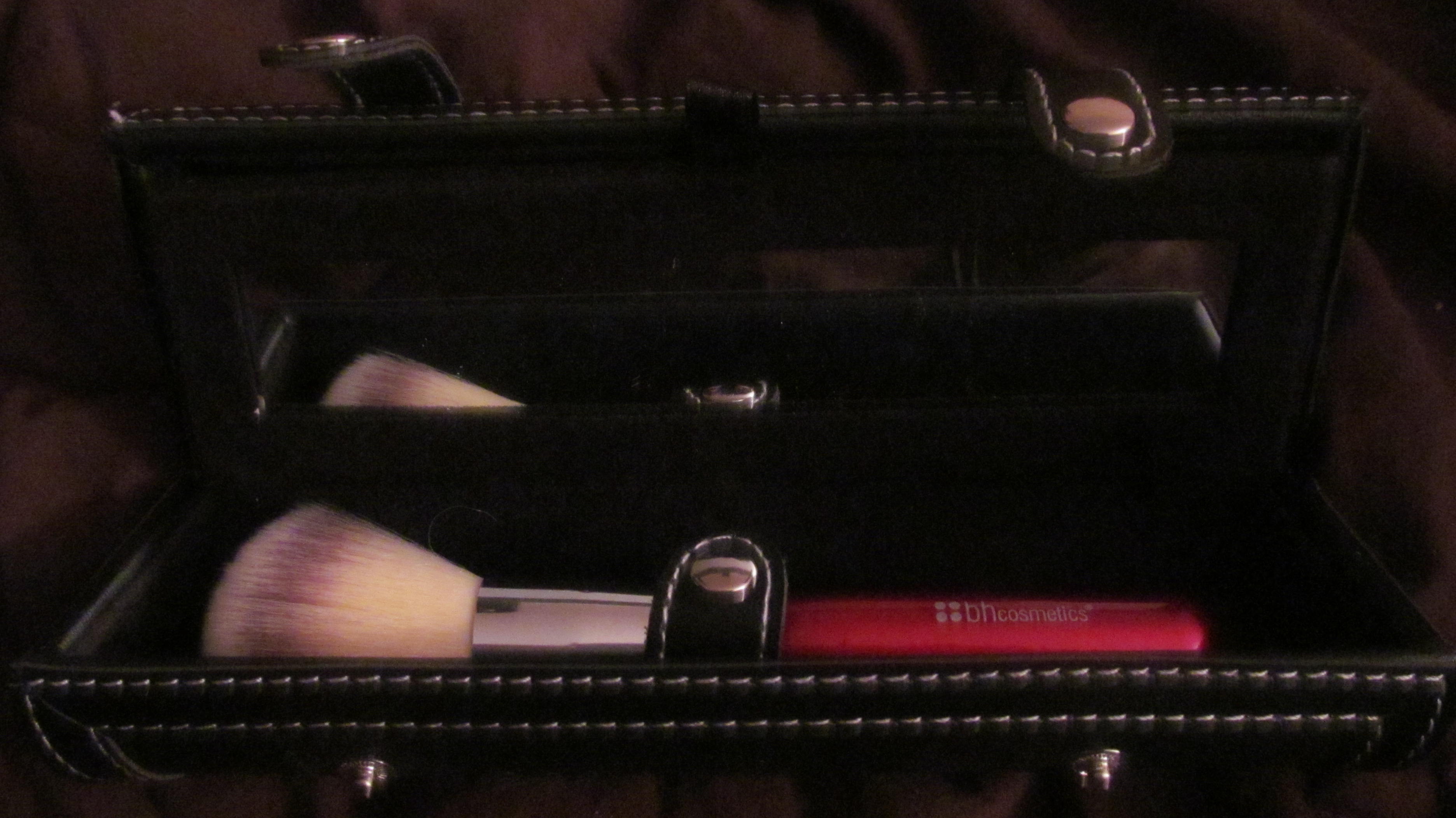 Lastly,but certainly not least, was my third purchase….brushes. After all, how else would we apply these beautiful shades without our awesome brushes?! BH Cosmetics has a 7-piece hard case brush set, that is so chic and useful. Its a black faux leather cylinder hard case, with brushes for eyes, face, and lips. The brushes are really good quality for flawless makeup application. They also each have individual holder, with snap closure to hold them securely. It has two separate compartments, one for the powder brush and one for the other brushes, which are a blending brush, flat shader brush, lip brush, precision brush, angled definer brush, and fine eyeliner brush. The side that houses the powder brush also has a built in mirror, perfect for on-the-go touch ups. The entire case snaps closed for secure travelling. This set usually sells for $ 18.95, but is on sale now for $ 15.50.