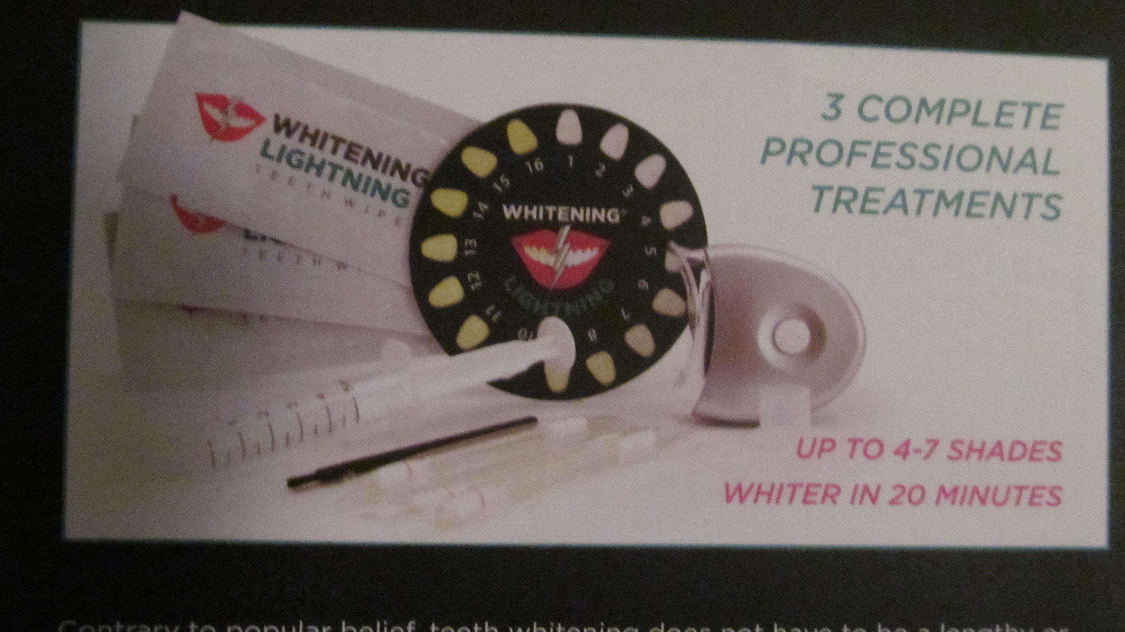The Dial-A-Smile Professional Whitening Kit includes 3 complete treatments that can get your teeth 4-7 shades whiter in 20 minutes. It includes: the shade wheel for you to track your progress, the whitening gel, the towels for wiping your teeth beforehand, vitamin E swabs to protect your gums, and the light to whiten. When I get a chance to try it out, I will do a review on it for you all. This kit costs $399.