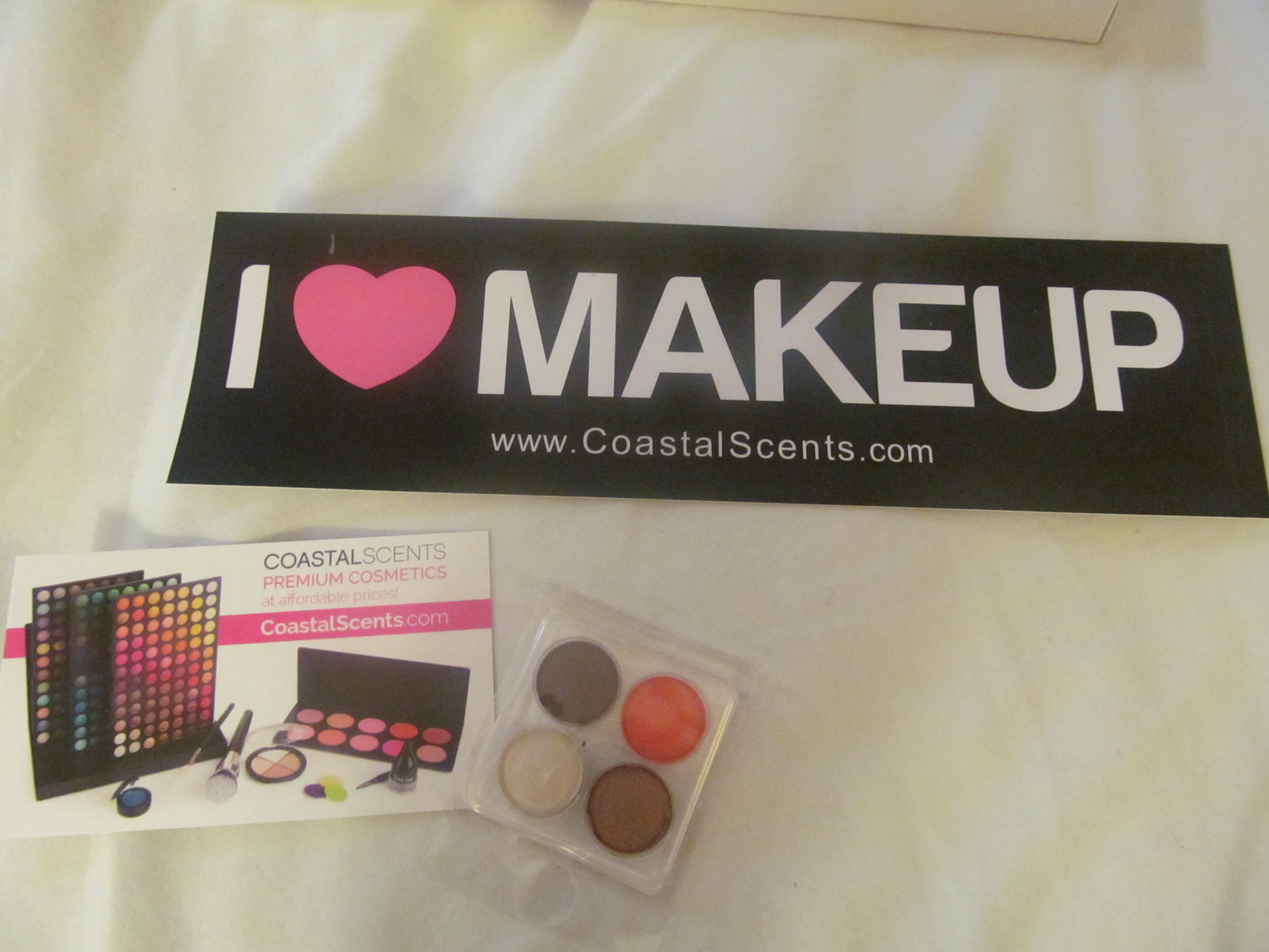 The palette originally retails for $ 15.95, but was on sale at the time for $ 9,95. Coastal Scents was also nice enough to include a mini sample eye-shadow quad, as well as an ‘I Love Makeup’ bumper sticker, free with this order.