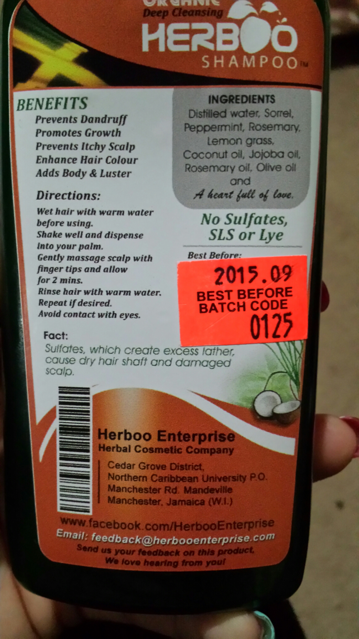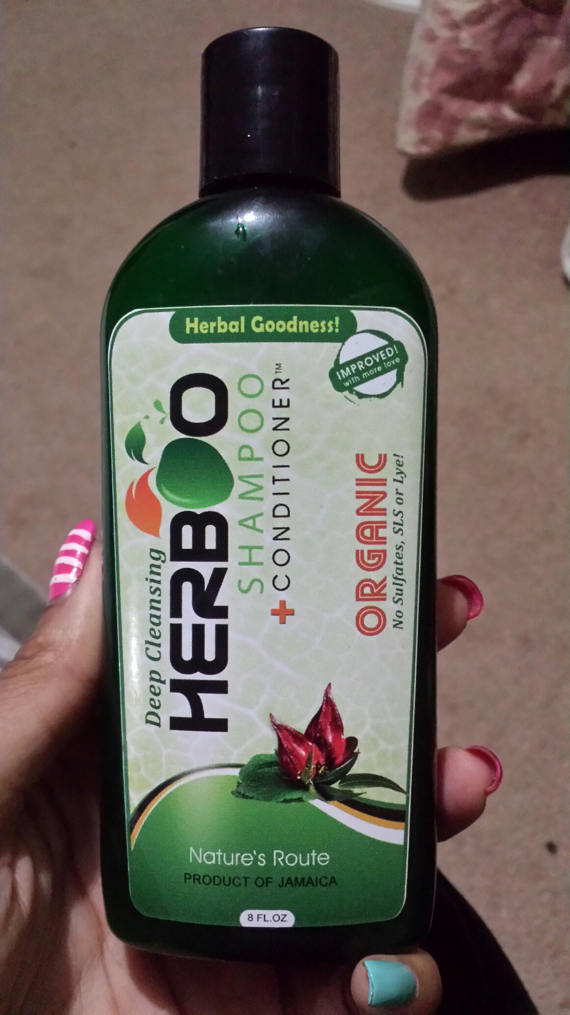 Herboo Enterprise is a 100% all natural personal care and cosmetic company. Their main product is the Herboo 2 in 1 cleansing shampoo and conditioner that caters for those who want to stop premature greying, dandruff, dry scalp, hair breakage as well as add body and luster to their limp hair. Since creating this product, they have earned national recognition among consumers in Jamaica, and their product is for sale in various pharmacies and outlets nationwide. I thoroughly enjoy supporting small companies, especially those from my home country. I will be launching my own company and product line within the upcoming months seeing what these young people were able to accomplish gives me hope and immense pride and joy. I hope I am able to do the same one day. And now on the review of this product.