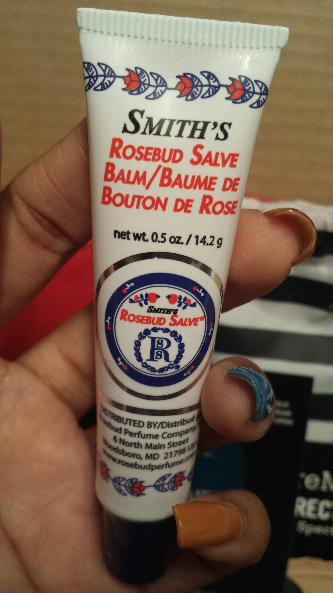 It had and still has a nice light rose scent, and a feel on the lips like a lighter, more sophisticated version of petroleum jelly. It does does very well at moisturizing the lips. The only issue we ever had with it was that it was in a tub. I don’t particularly like dipping a finger (whether very clean out otherwise) into a product. If your fingers are clean, you’ll get stiff on them, and if they’re not so clean, then….well you’re transferring some serious germs. I remember saying to my mom years ago that it would be perfect if it came in a tube. And voila! Fast forward some time, and request granted!