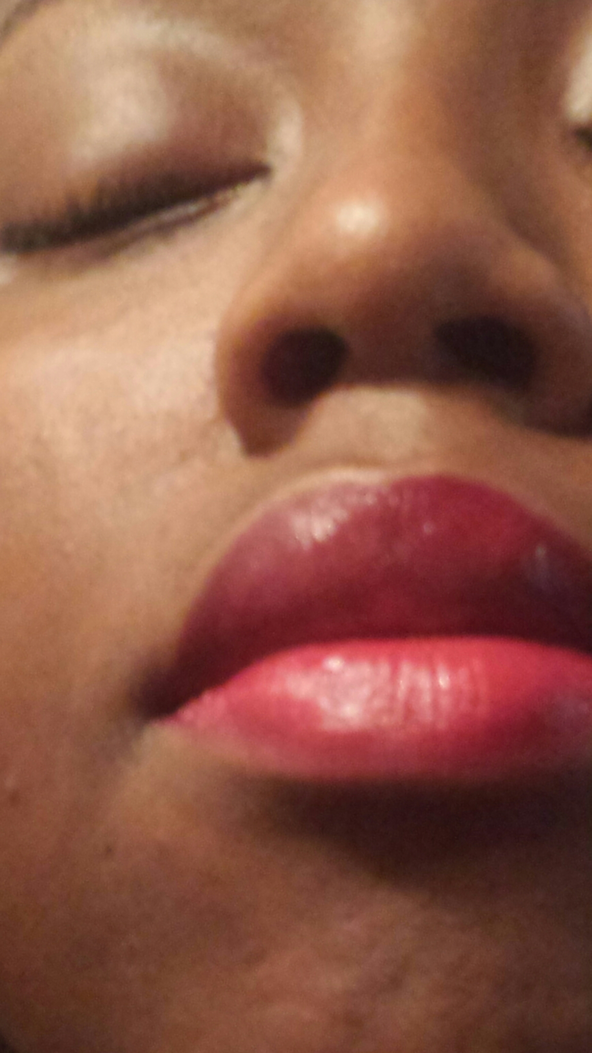 Now for the cons: it has a ‘perfumy’ scent, so if you’re not into scented products then stay away. Also, you can taste the perfume (I hope that makes sense), and the flavor does not fade with wear (nor does the scent). It is also not matte. I will insert a picture to show what I mean. It is also not long lasting at all. With my normal eating and drinking, it was completely gone in 2 hours. I would somewhat expect that with a lip gloss, or even a shiny lipstick, not a ‘matte’ lip color.