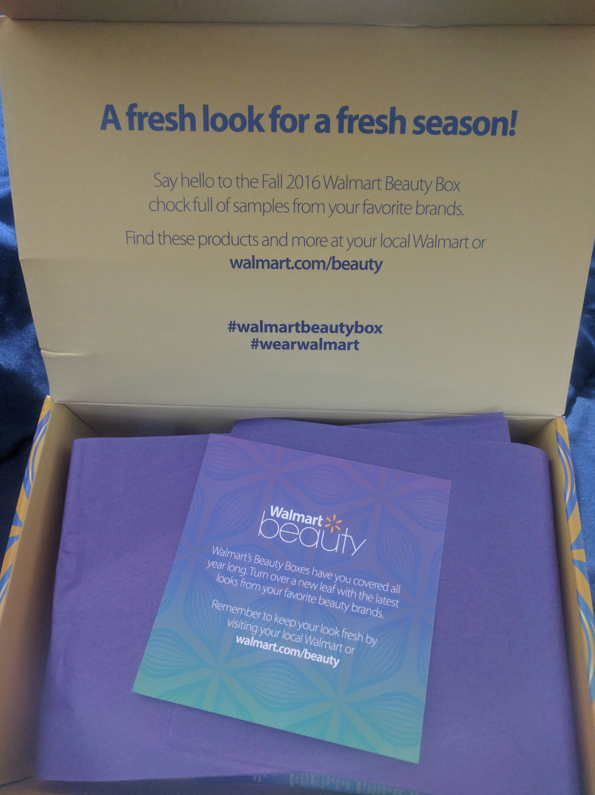 So by the topic, you can already deduce what I got in the mail. And boy, is it pretty! They certainly stepped their game up on this box. It’s now decorated, instead of just plain white. And upon opening, I was not disappointed! This box was jam packed with samples. For those of you who have zero idea what I’m talking about, Walmart has a beauty box. It’s $5 , comes out once per season and has samples of various products from their beauty section. From hair care to foundation samples, you never know what you’re going to get in this box.
