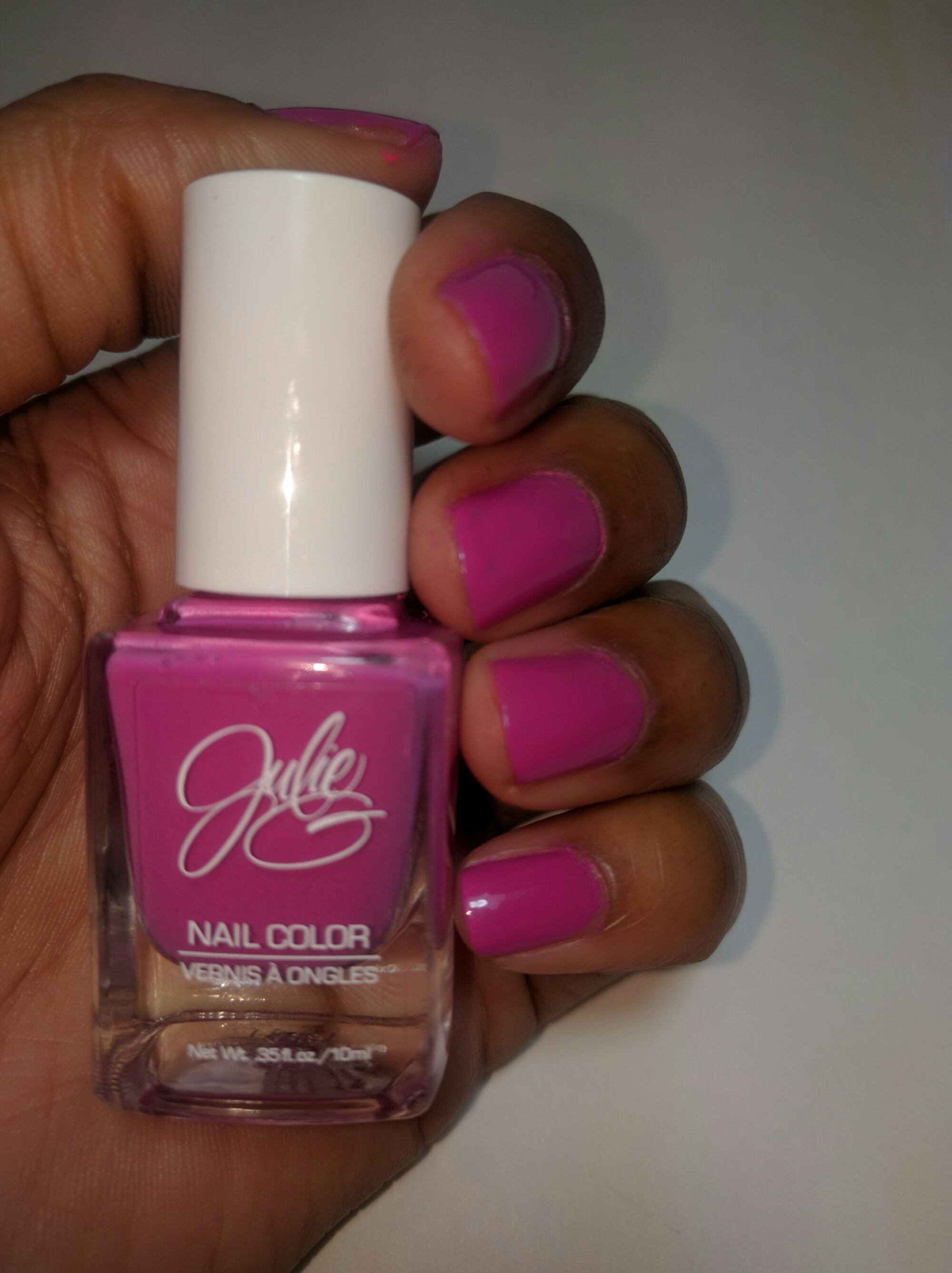 This week’s manicure is from Julie G,a very respected nail polish brand in the polish community. I got this in a Julie G nail polish collection one summer. I cannot remember for the life of me how much it cost, but I do remember it was a great deal! The purchase was inspired by CofferBreakWithDani on YouTube. Since that’s her favorite brand, and I didn’t have any of them in my collection, I figured it was worth a try (especially since it was on sale). I do remember that 6 polishes came in it, and I got it on Groupon.