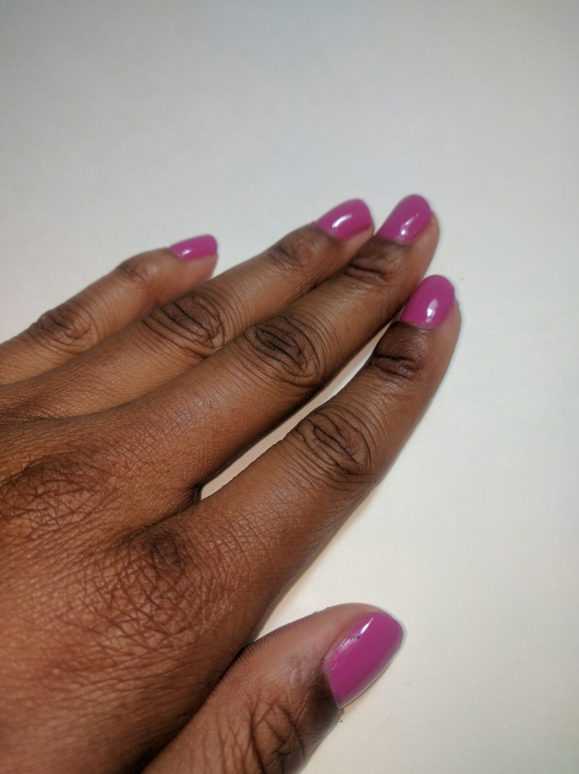 I have found this brand to be on the thinner side formula wise. However, I would say that it is a lasting manicure, even though it is definitely a two coater. The name of the color is Rio de Janeiro and it was used along with Pro-FX Complete ³ Base Coat, Strengthener, and Top Coat, as well as HK Girl Top Coat by Glisten and Glow.