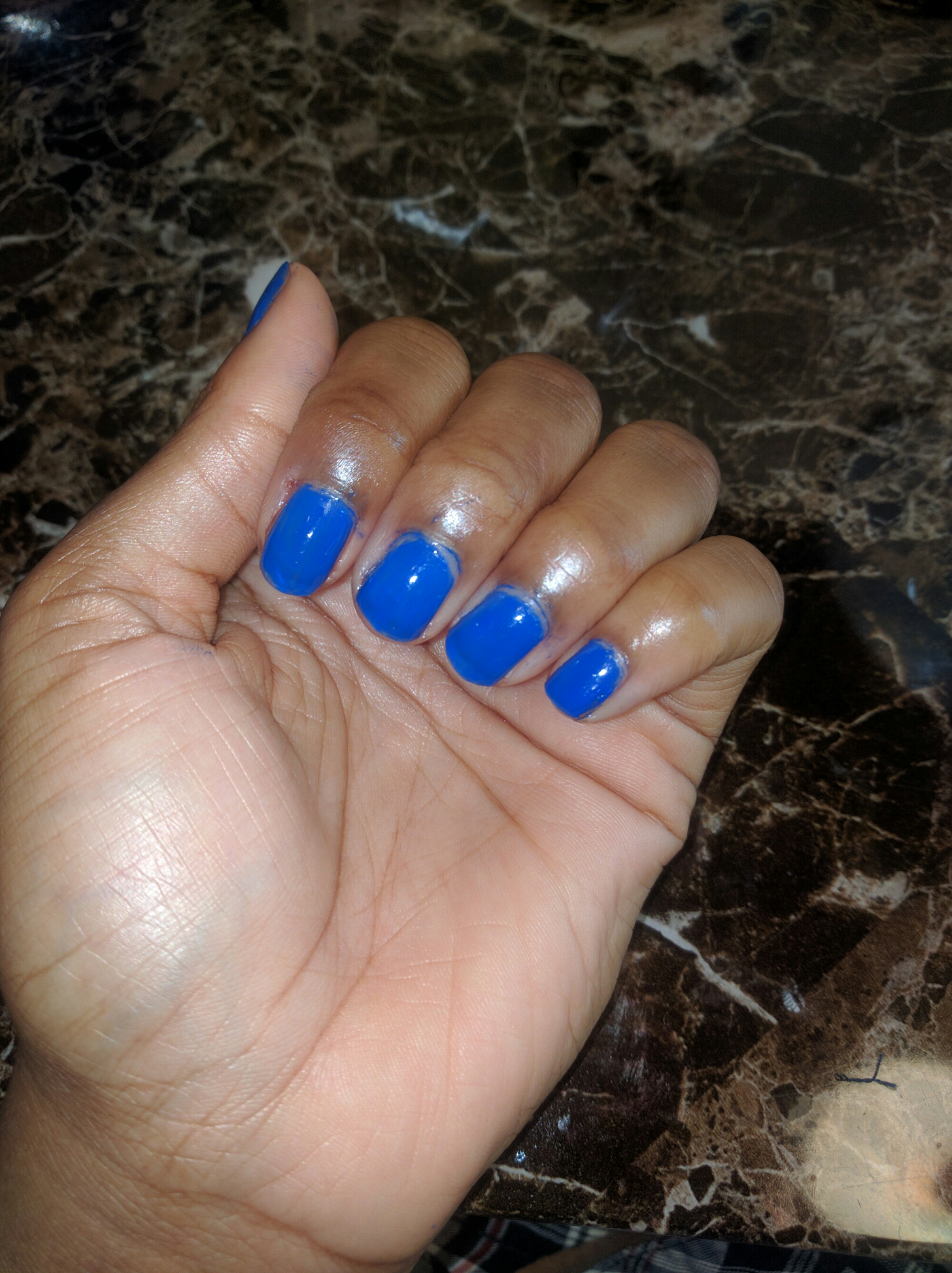 Today’s manicure is a beautiful cobalt blue, creamy shade, #130 by Chelly. I found this polish brand at Walgreens while searching for nail polish remover. For those of you who know the layout of Walgreens, you know that where I found this is nowhere near the remover, but when has that ever stopped me from getting nail polish?! (Especially reasonably priced ones).