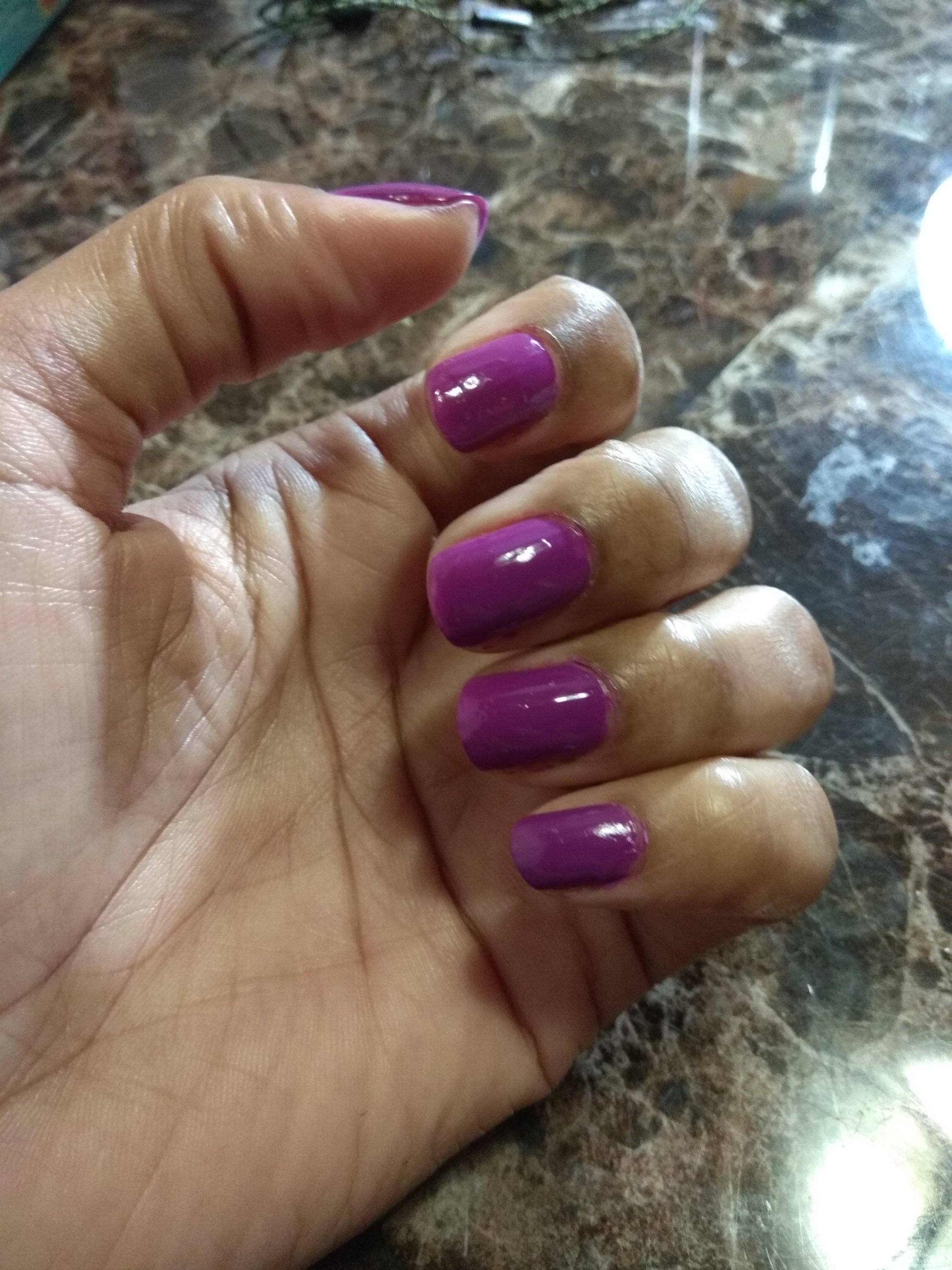 This polish is such a good quality, I would personally apologize to the makers if I could, for judging them so poorly. It is creamy, and with two coats, exhibits a great level of opaqueness to it. It is the only purple in the pack, and the shade is perfect. Such a beautiful spring shade! Enough of my ranting. Let’s get to the pictures